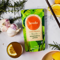 Rosemary & Lemon Chicken Broth: Filtered Water, Organic Chicken Bones & Feet, Organic Onions, Organic Carrots, Organic Celery, Organic Roasted Garlic, Organic Lemon Juice, Himalayan Sea Salt, Organic Rosemary Powder, Organic Black Peppercorns, Organic Bay Leaves